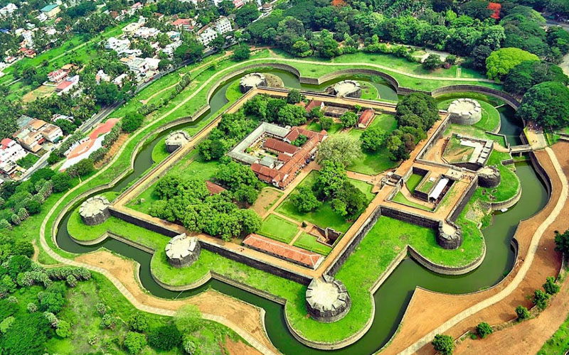 The majestic Palakkad Fort sits in a sprawling 15 acres on the western border of the town. This strategic fort was built by Hyder Ali, the Sultan of Mysore, in 1766 AD. This fort, a witness to the history of Mysore invasions in Kerala and the advent of British rule, survives in its original glory and grandeur. This fort was in and out of control of the British and Mysore sultans till 1790 AD; when it was used by the British as a base for the final battle of Srirangapatnam which paved way for the complete annihilation of the Mysore Sultanate. The fort was renovated by the British in the European style with thick stone walls and strong bastions. The Fort offers panoramic views of the town of Palakkad. The Fort is currently a protected monument under the Archeological Survey of India.